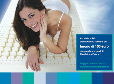 Visto il grande successo riscontrato dalla campagna promozionale in corso, vogliamo comunicare a tutti i lettori del nostro blog che si conclude con il 31 ottobre 2010 la promozione che consente di avere un buono acquisto del valore di 100€ spendibile in accessori Manifattura Falomo. La miglior occasione per poter toccare con mano i materassi
